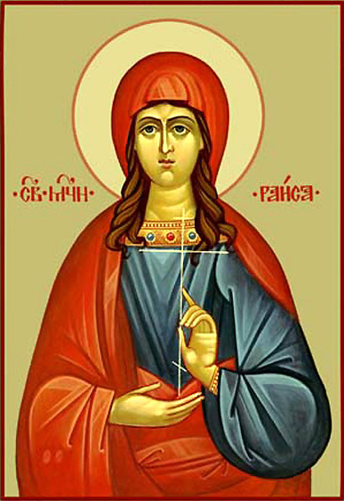 Η δε Αγία Ραΐς όχι μόνο δεν έφυγε, αλλά με ευτολμία παρουσιάστηκε μπροστά στον ηγεμόνα, περιγέλασε τους θεούς του και τον έφτυσε κατάμουτρα, επειδή και αυτός ειρωνεύτηκε τον Χριστό.