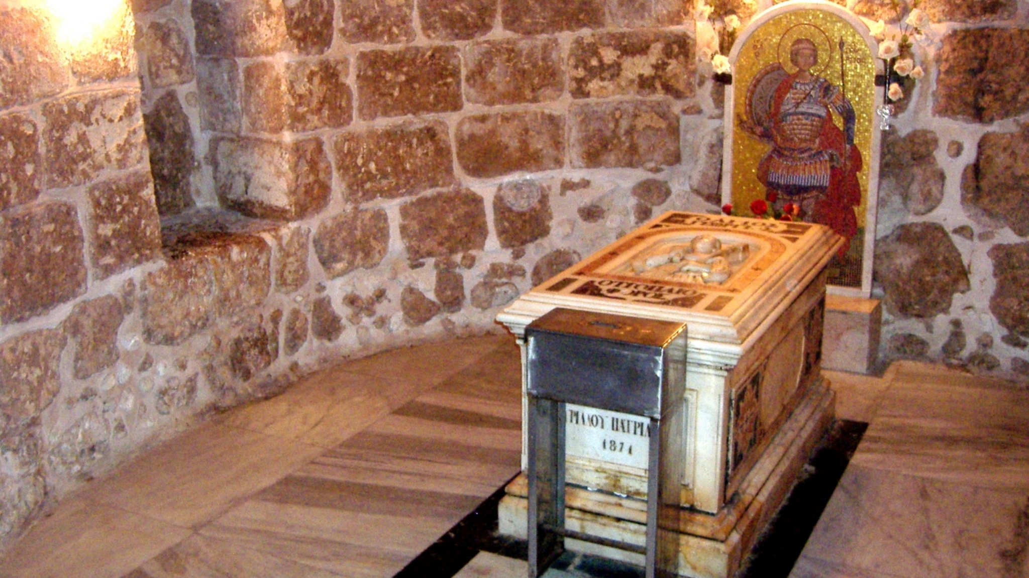 Ο Ιωάννης ο Φωκάς, το 1185 μ.Χ., ήλθε στη Λύδδα και γράφει για το ναό του Αγίου Γεωργίου ότι κάτω από την Αγία Τράπεζα ήταν ο τάφος του Αγίου, όπως του είπαν οι κληρικοί του ναού. Ο Λατίνος επίσκοπος έβγαλε τις πλάκες του ναού και βρήκε το σπήλαιο, που ήταν ο τάφος του Αγίου Γεωργίου, αφού προηγουμένως ο τάφος δεν φαινόταν και οι προσκυνητές προσκυνούσαν μαρμάρινο στόμιο. Δύο άνθρωποι προσπάθησαν να σηκώσουν την πλάκα του τάφου, αλλά βγήκε φωτιά, που άφησε τον ένα ημικαή και τον άλλο πεθαμένο.