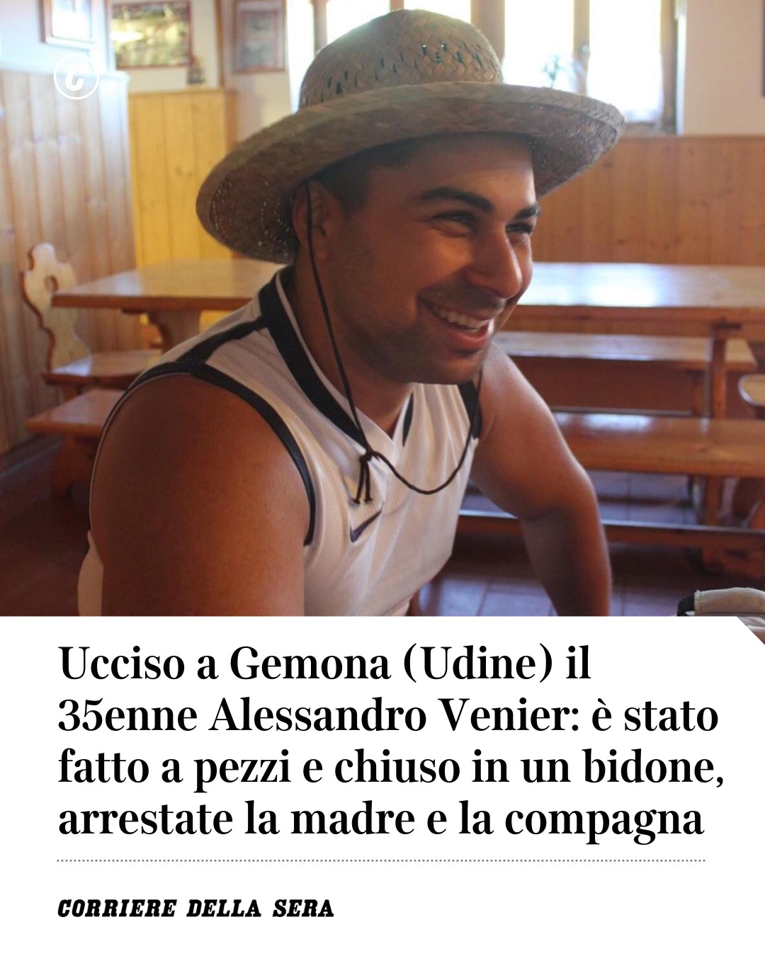 Η σοκαριστική υπόθεση αποκαλύφθηκε το πρωί της Πέμπτης στο Ούντινε της βόρειας Ιταλίας, όταν οι Αρχές εντόπισαν το διαμελισμένο πτώμα του 35χρονου Αλεσάντρο Βενιέ μέσα στην αποθήκη του σπιτιού του.
