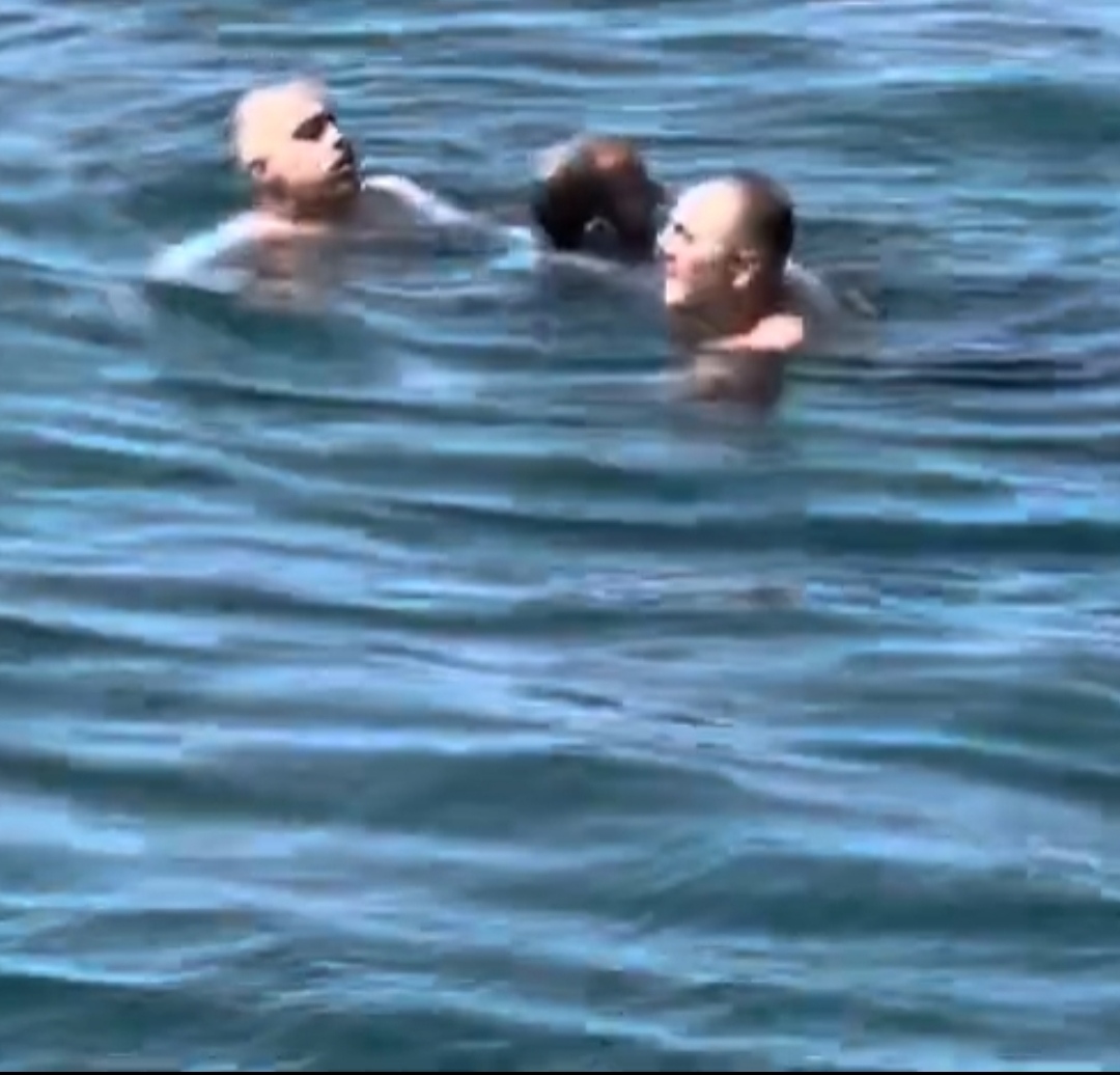 Ένας αστυνομικός της Τροχαίας και ένας αστυνομικός από την ομάδα ΔΙ.ΑΣ. έπιασαν το άτομο που είχε βουτήξει στη θάλασσα και παρά το γεγονός ότι αυτό αντιστεκόταν κατάφεραν και το έβγαλαν στην στεριά.