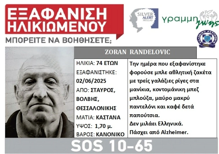 Σε συναγερμό έχουν τεθεί οι αστυνομικές αρχές της Θεσσαλονίκης για την εξαφάνιση ενός ηλικιωμένου άνδρα που έφτασε στη χώρα μας για διακοπές με την οικογένεια του.
