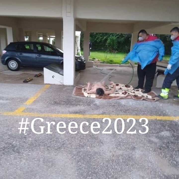Σύμφωνα με τους ισχυρισμούς της δικηγόρου, η οποία μίλησε στον ΑΝΤ1, οι δύο διασώστες «έπλυναν» με λάστιχο την ηλικιωμένη που ήταν πάνω σε μια κουβέρτα μπροστά στους αστυνομικούς και άνθρωπο του δήμου.