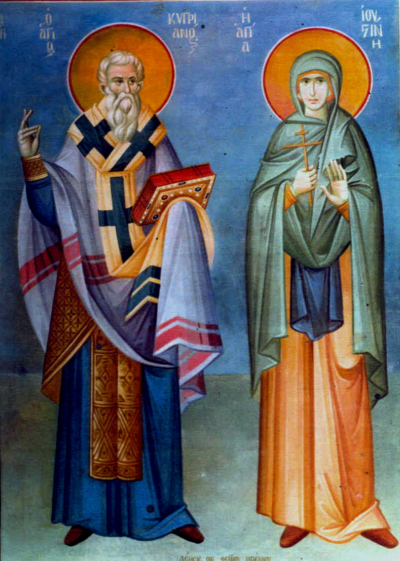 Ο Άγιος Κυπριανός ήταν πλούσιος, ευγενής, φιλόσοφος από την Καρχηδόνα της Λιβύης. Έζησε στα χρόνια του Δεκίου (249 – 251 μ.Χ.) και εξασκούσε τη μαγική τέχνη στην Αντιόχεια.