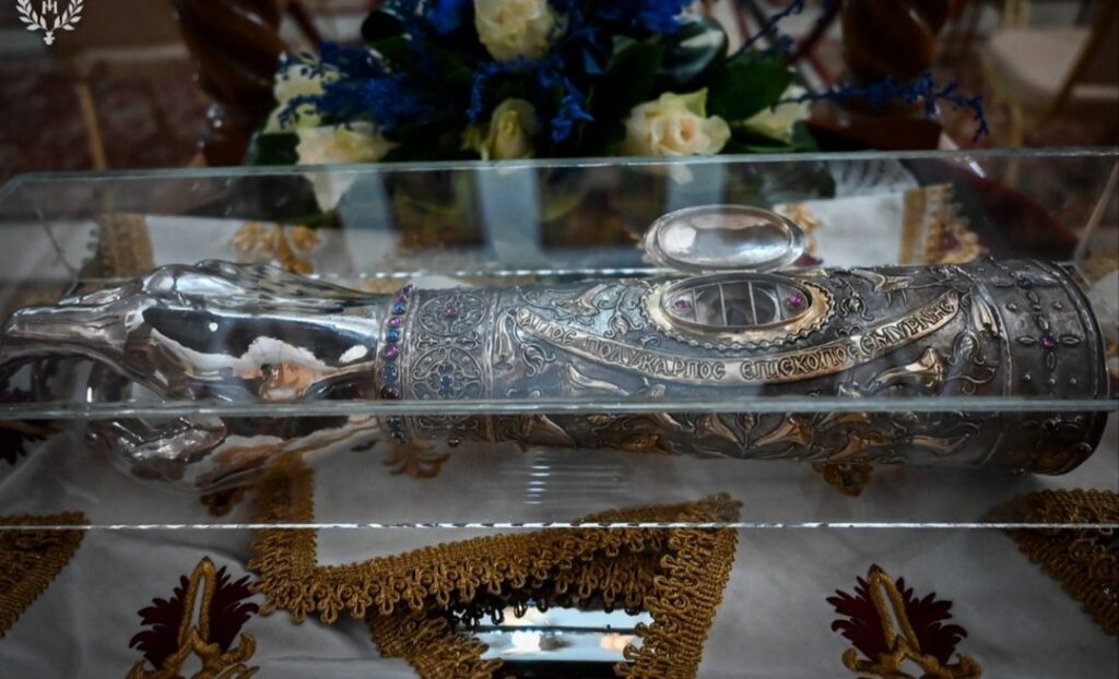 Μετά το πέρας της Θείας Λειτουργίας, ο Σεβασμιώτατος, αφού ευλόγησε το περίτεχνο κόλλυβο του Αγίου Πολυκάρπου, ευχαρίστησε όλους όσοι βοήθησαν στην πραγματοποίηση της πανήγυρη, με πρώτο τον προϊστάμενο του Ιερού Ναού αιδεσιμολογιώτατο Οικ. Στυλιανό Χαρπαντίδη και τους δεκάδες συνεργάτες του στη διακονία της Ενορίας.