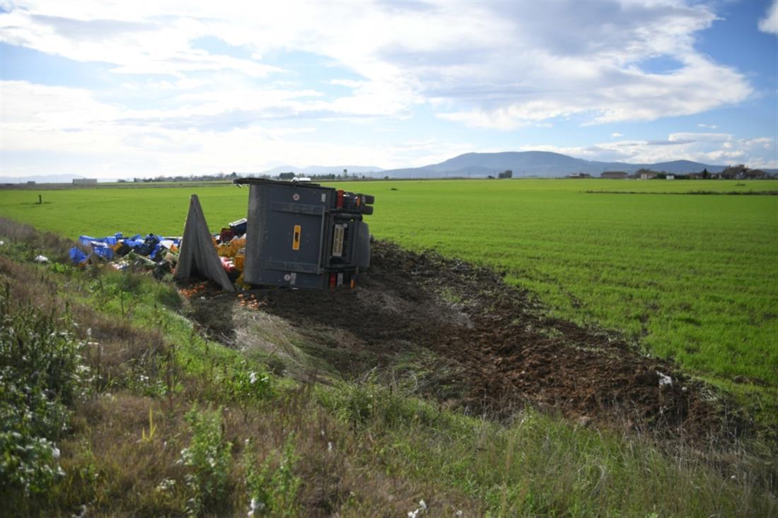 Το τροχαίο έγινε λίγο πριν τις 9.45 όταν κάτω από αδιευκρίνιστες, μέχρι στιγμής συνθήκες, φορτηγό που μετέφερε φρούτα βγήκε εκτός πορείας με αποτέλεσμα τον θανάσιμο τραυματισμό του οδηγού.