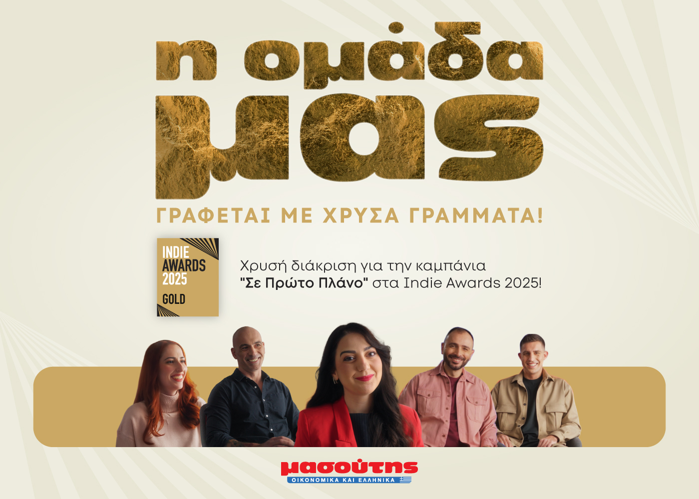 H πρώτη employer branding καμπάνια της Διαμαντής Μασούτης Α.Ε. με πρωταγωνιστές τους ανθρώπους της, απέσπασε τη σημαντική διάκριση Gold στην κατηγορία Best in PR στα Indie Awards 2025, επιβεβαιώνοντας τη δυναμική παρουσία της εταιρείας ως εργοδότη επιλογής και αναδεικνύοντας τη διαχρονική της δέσμευση στην ουσιαστική στήριξη και ανάπτυξη των ανθρώπων της.